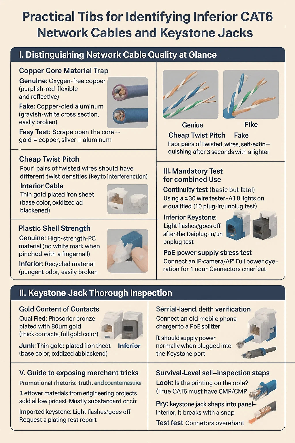 নিকৃষ্ট CAT6 নেটওয়ার্ক কেবল এবং কীস্টোন জ্যাক সনাক্ত করার জন্য ব্যবহারিক টিপস
