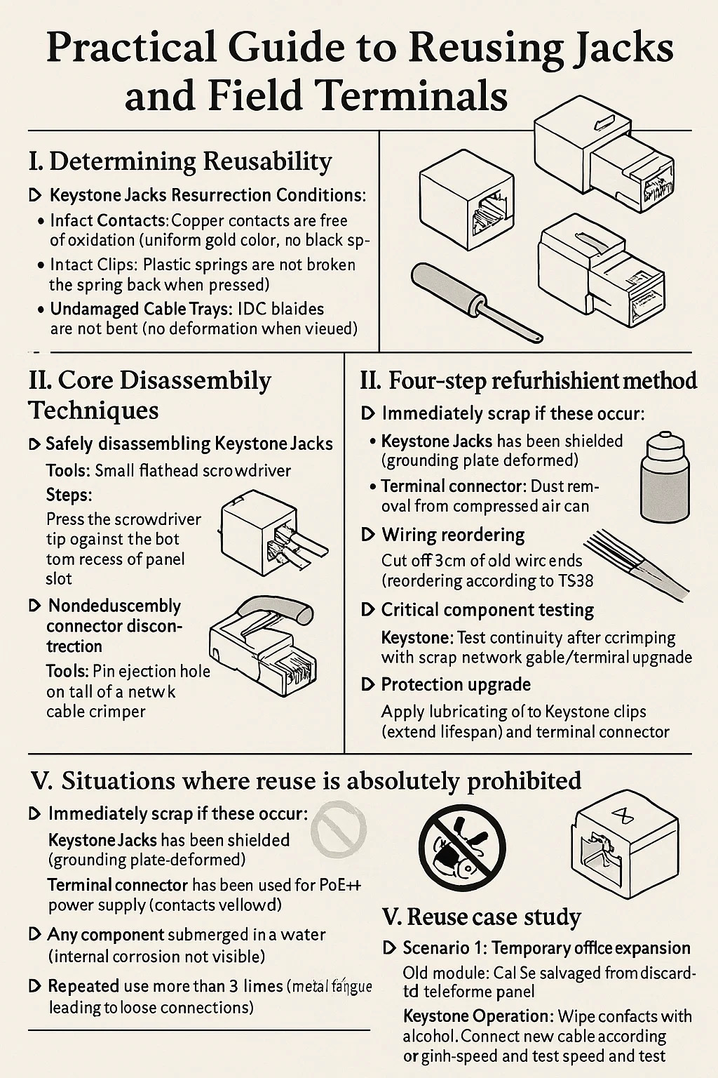 কীস্টোন জ্যাক পুনরায় ব্যবহার করার জন্য ব্যবহারিক নির্দেশিকা এবং ফিল্ড টার্মিনেশন প্লাগ