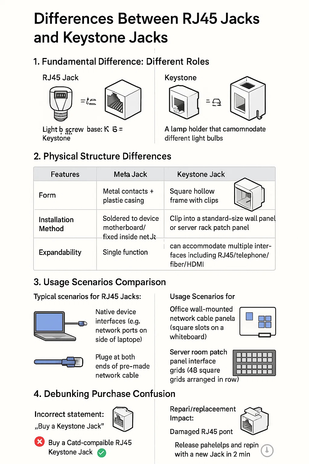 RJ45 জ্যাক এবং কীস্টোন জ্যাকের মধ্যে পার্থক্য